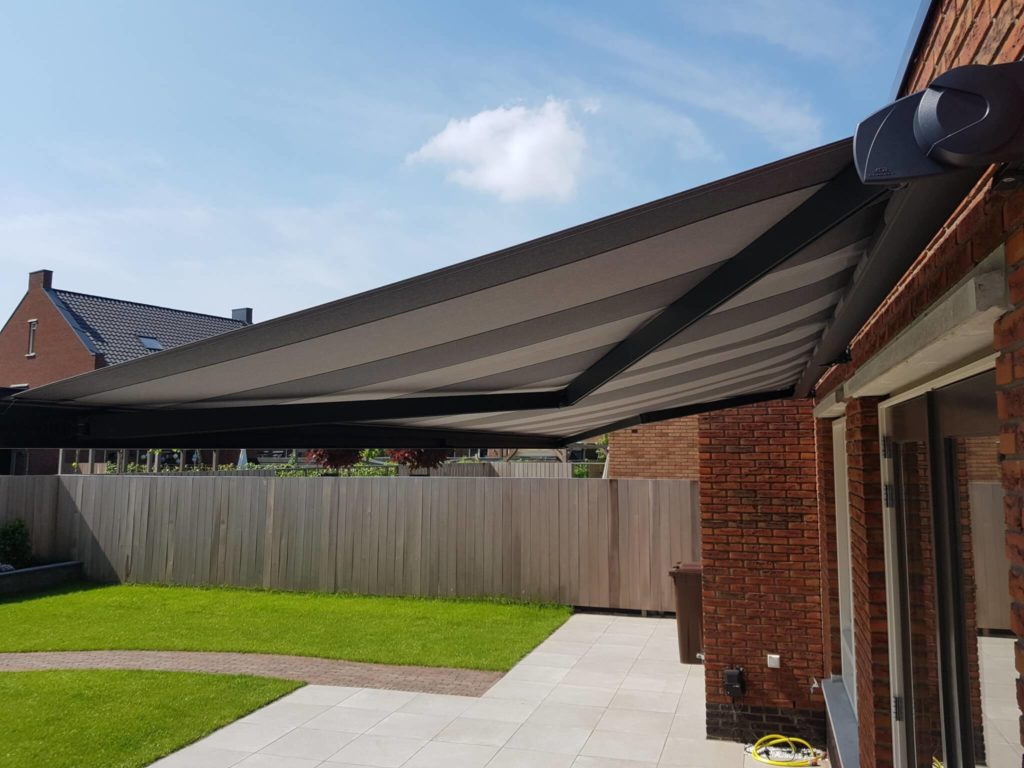 Een knikarmscherm is erg geschikt voor je terras of veranda. Het scherm wordt door middel van 2 armen uitgerold. De armen knikken recht vooruit zodat je gewoon onder het scherm door kan lopen. De hoek van een knikarmscherm kun je zelf verstellen waardoor je het scherm de hele dag kunt gebruiken. Ook wanneer de zon op zijn laagst is! Met een knikarmscherm kun je altijd genieten van een schaduwrijk terras. Met een knikarmscherm blijft ook de binnentemperatuur van je woning lekker koel en kun je in de zomermaanden ook lekker binnen zitten zonder weg te smelten. Buiten het optimale wooncomfort zorgt een knikarmscherm ervoor dat de waarde van je woning aanzienlijk omhoog gaat.