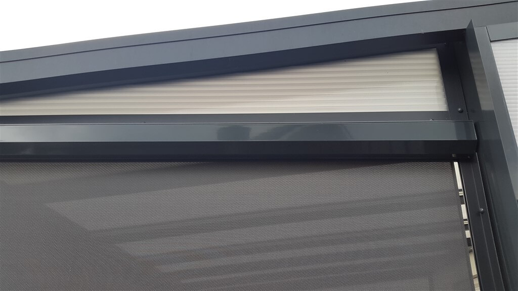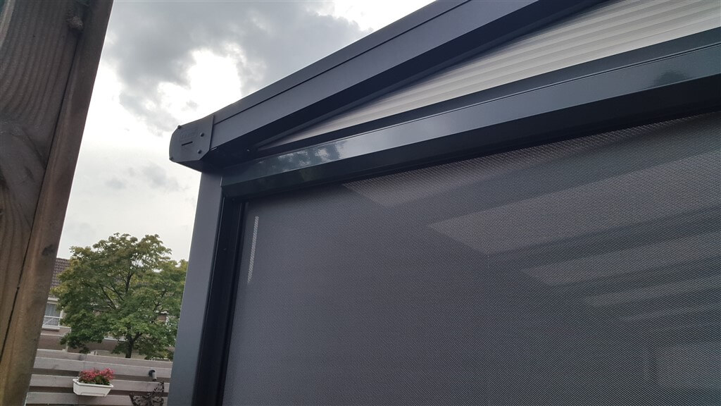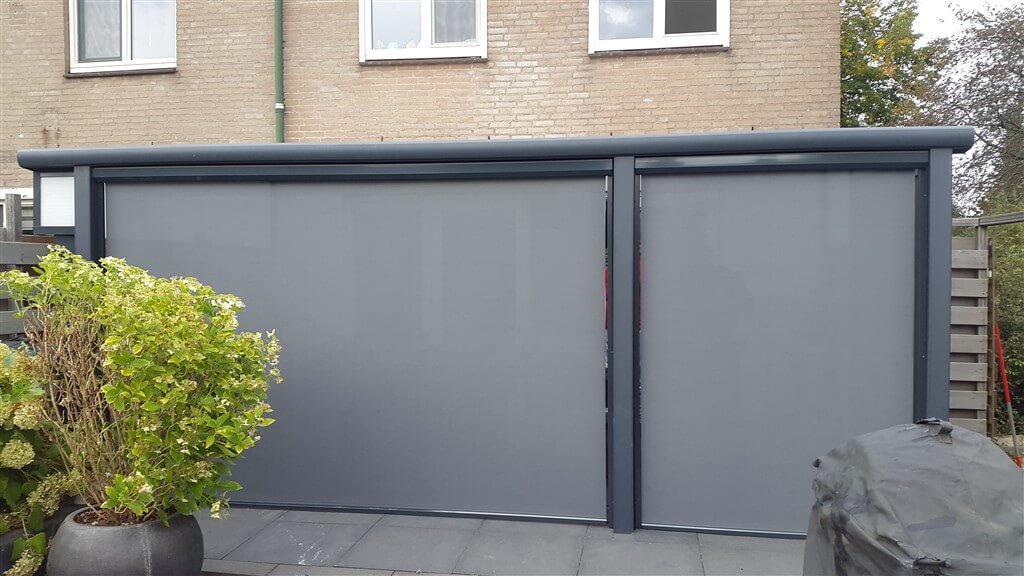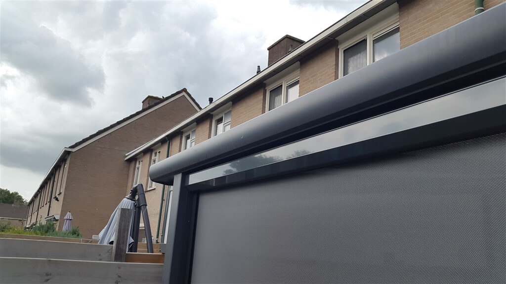 Schaduw Zonwering heeft een terrasoverkapping geplaatst met hierop 3 standaard screens gemonteerd in de wijk Spechtenkamp. Op de terrasoverkapping zit een opaal kleurig zonwerend polycarbonaat dak. De screens zijn te bedienen met een 5 kanaalsafstandbediening en het screen aan de zijkant is keurig afgewerkt met een spiekozijn gevuld polycarbonaat.