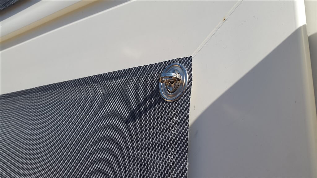 Schaduw Zonwering heeft een elektrisch bediend ritsscreen gemonteerd op de begane grond van een één-gezinswoning in Ridderkerk. Op de achterdeur en het bovenraam hebben we een los screen doek voorzien van tourniquettes en deze bevestigd met een draaisluiting uiteraard met rvs schroeven.