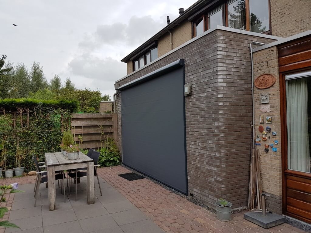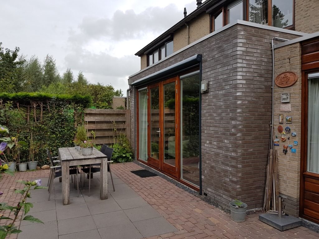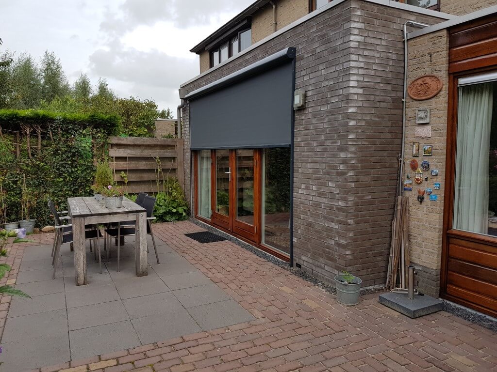 Schaduw Zonwering heeft aan deze woning in Montfoort een prachtig ritsscreen geplaatst voor de perfect zonwering. Met dit nieuwe ritsscreen kunnen de bewoners aan deze woning in Montfoort weer lekker genieten van een koele binnen woning. Het ritsscreen zorgt ervoor dat er geen warmte binnenkomt. Wanneer de bewoners nu thuis komen zal hun huis niet meer aanvoelen als een sauna. Het screen zit gemonteerd aan de uitbouw van deze woning en is elektrisch bedienbaar met een schakelaar. Het screen zit vlak langs het raam gemonteerd met een rits waardoor deze strak blijft zitten.