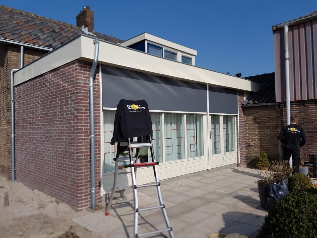 Schaduw Zonwering heeft aan deze dag aan deze woning in Montfoort ritsscreens geplaatst aan de uitbouw. De ritsscreen zijn ingebouwd in de overstek van deze uitbouw. De afwerking is perfect gedaan en het resultaat is verbluffend. Met deze nieuwe ritsscreens kunnen de bewoners nu in de zomer gemakkelijk de zon weren zodat de binnen woning lekker koel blijft. Het inbouwen van de ritsscreen zorgt immers ook voor een mooie look aan de uitbouw. Immers zorgen we er altijd voor dat de afwerking van onze zonwering altijd perfect gedaan wordt. De ritsscreens zijn in de beste staat en gaan erg lang mee. Bovendien kunnen de bewoners van deze woning in Montfoort dankzij deze nieuwe zonwering blijven genieten van hun woning. De woning zal nu niet meer aanvoelen als een sauna en daarbij komt ook dat de ritsscreens nog veel meer voordelen met zich mee brengen.