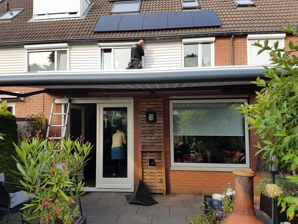 Aan deze woning in Houten hebben we een nieuw terrasscherm geplaatst aan de uitbouw van de uitbouw van de woning. Het terrasscherm is voorzien van een verlengde montagesteun voor extra stevigheid. Het grote terrasscherm zal voor de bewoners een nieuwe leefomgeving creƫren. Want nu kunnen ze lekker genieten van het buiten weer in de zomermaanden. Niet alleen is het nu lekker om buiten te zitten maar zorgt het terrasscherm ook voor een leuke sfeer en een prachtig gezicht.