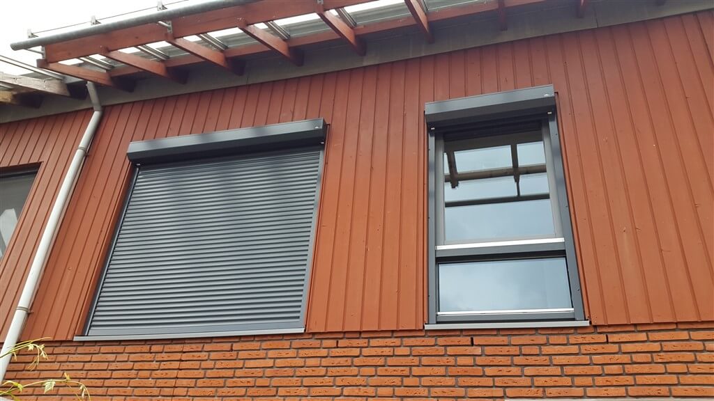Aan de achterzijde van de kap van het rolluik hebben we compriband geplakt dit is zwart en zet uit, hierdoor zijn de rolluiken ook aan de bovenzijde licht en water dicht. De onderlat van het rolluik loopt netjes aan op de bestaande aluminium waterslag.