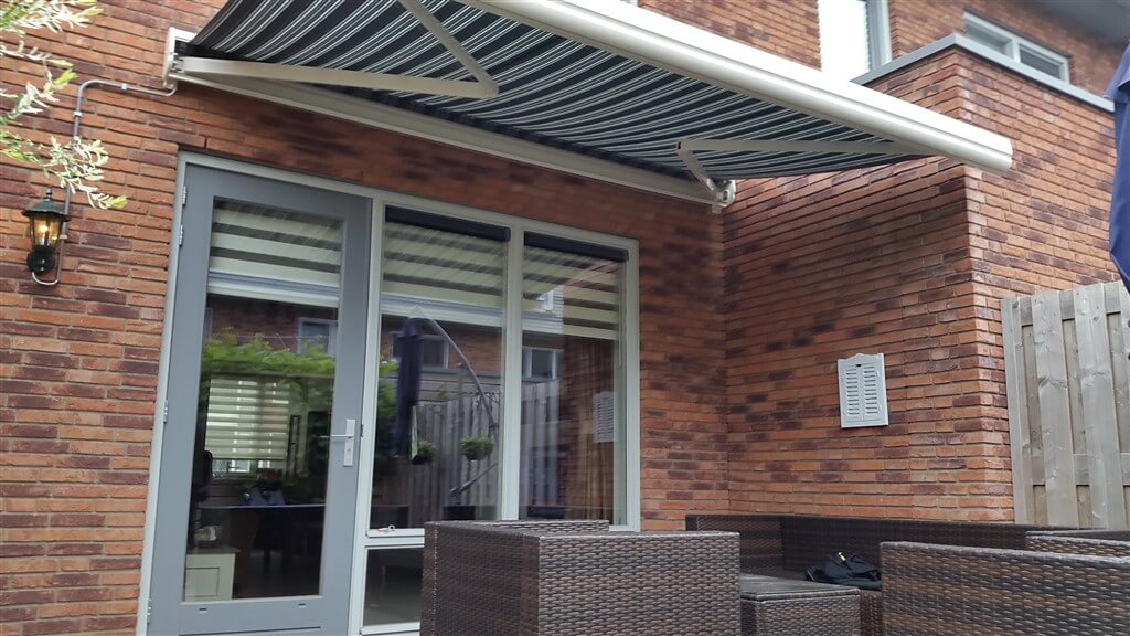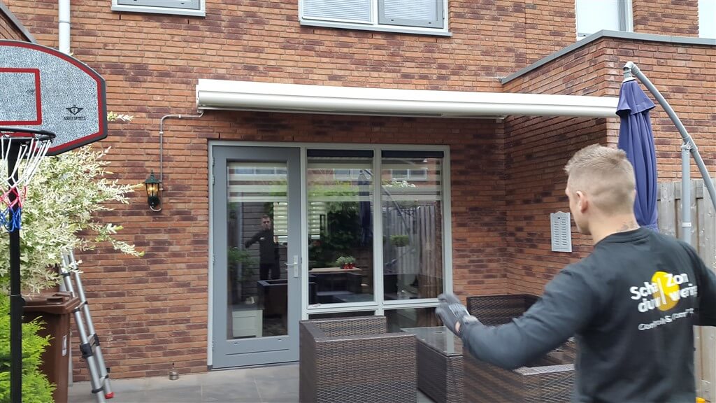 Schaduw Zonwering heeft een elektrisch bediende semi-gesloten terrasscherm gemonteerdĀ op de achtergevel van een woning in Vleuten. Voor de elektra is gebruik gemaakt van een stroompunt aan de buitenzijde van de woning. Hierdoor was het niet nodig om een gat naar binnen te boren. Het draad van de elektra is mooi in een pvc buisje weggewerkt, dit geeft een mooier aanzicht aan de muur.